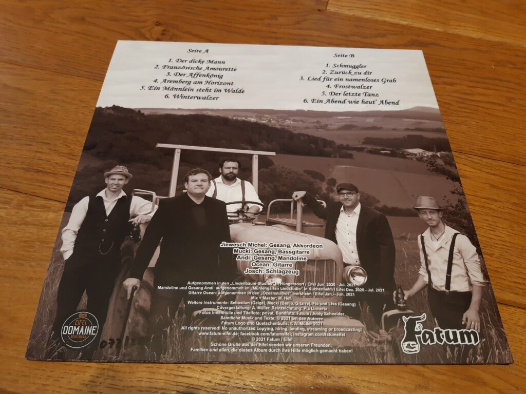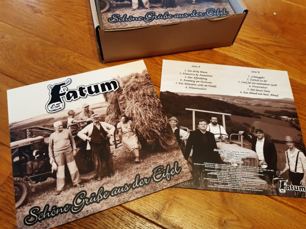 Die Platte ist ab sofort bei uns erhältlich. Schreibt uns einfach an! Natürlich findet ihr die Musik auch auf allen gängigen Plattformen, wie z.B. bei bandcamp tun: https://fatumeifel.bandcamp.com/album/sch-ne-gr-e-aus-der-eifel