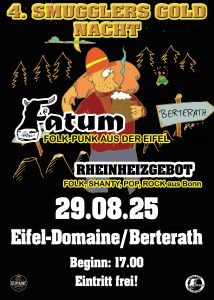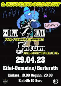 Die 3. Smugglers Gold Nacht rückt immer näher. Diesmal spielen wir open air im Biergarten der Brauerei Eifel Domaine. Zudem werden wir sehr folkig unterwegs sein, da wir ohne Schlagzeug auftreten werden. Ihr dürft also gespannt sein, was an diesem besonderen Abend alles geschieht…